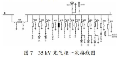 在某變電站結(jié)合新投設(shè)備首次停電檢修時(shí)對(duì)35kV充氣柜進(jìn)行了例行試驗(yàn),包括交流耐壓試驗(yàn)、回路電阻測(cè)試和斷路器機(jī)械特性測(cè)試。35 kV充氣柜一次接線(xiàn)圖如圖7所示。