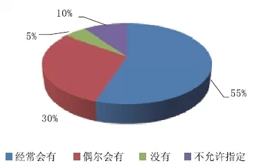 在參與者所觸摸的項目中,針對是否常常有指定廠家或品牌的問題,認為常常會有的占比55%;偶爾會有的占比30%;沒有的占比5%;不允許指定的占比10%。如圖4所示。